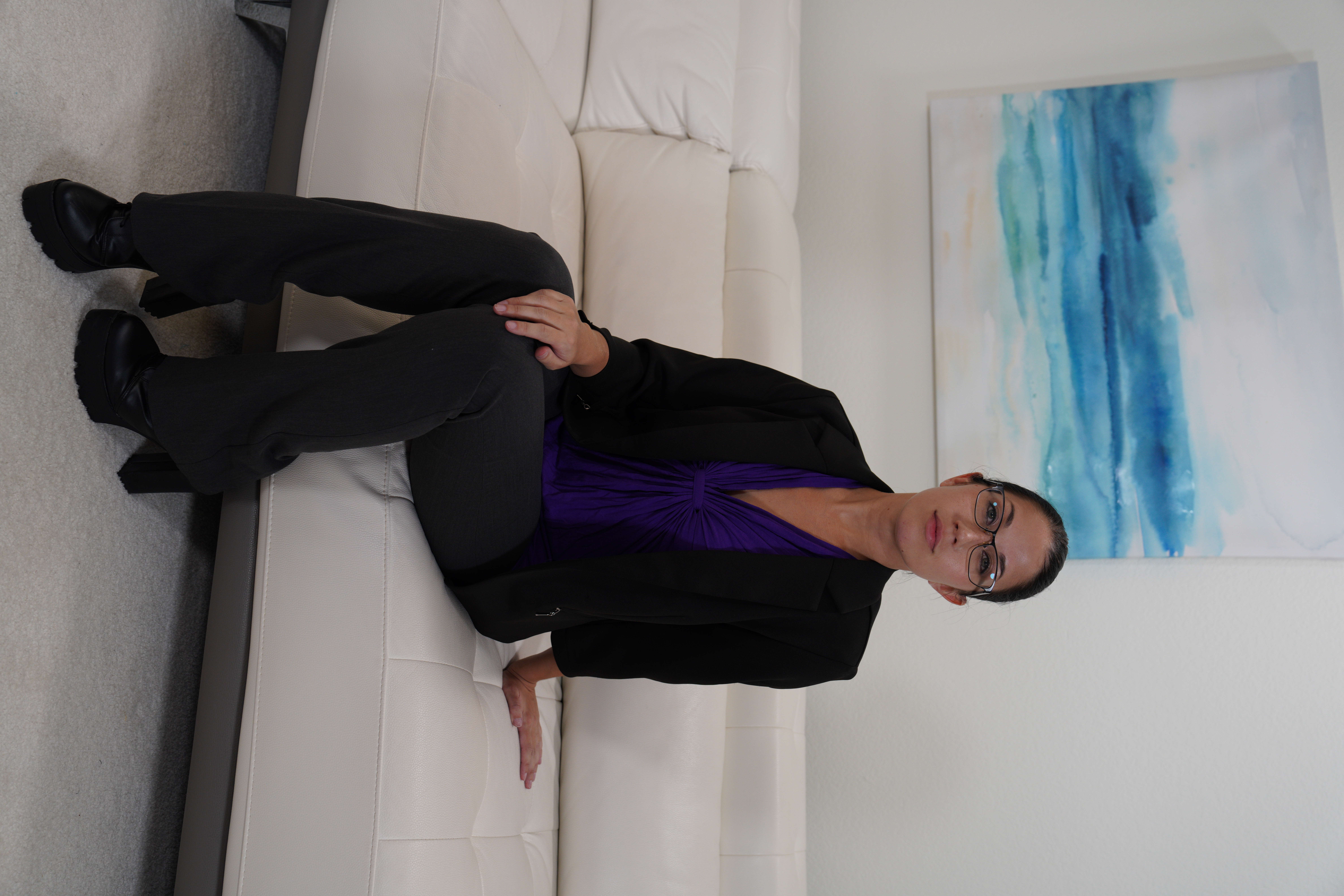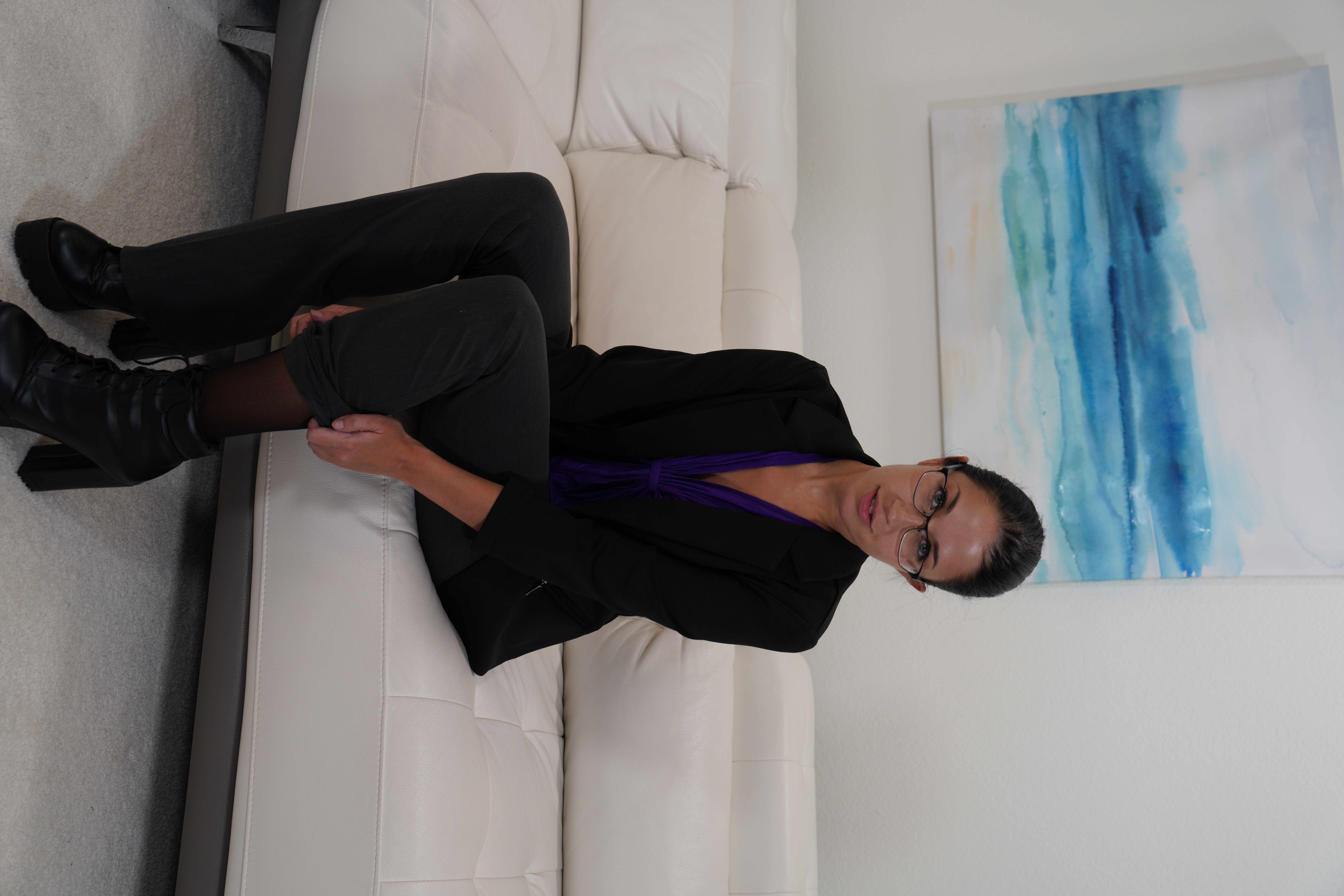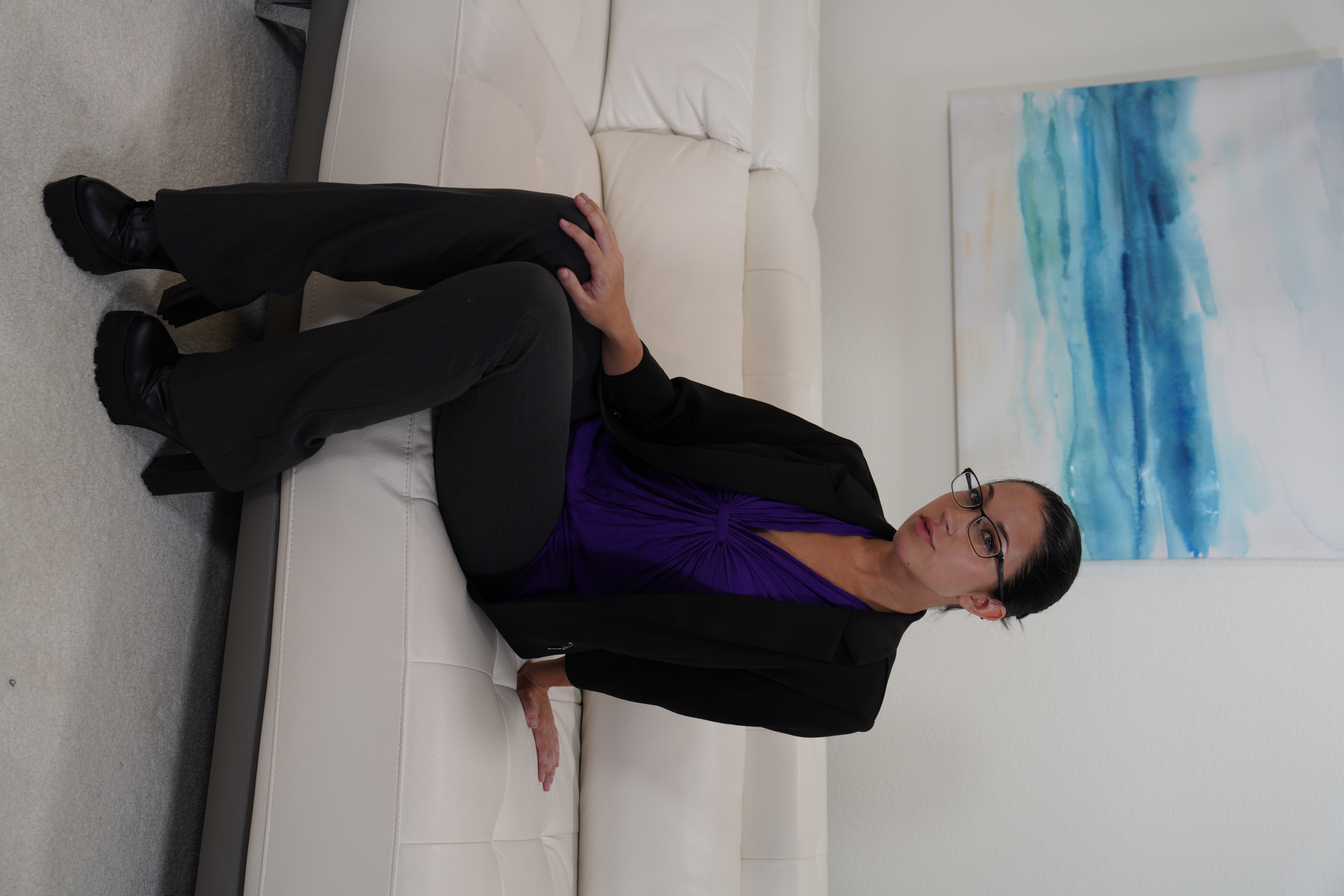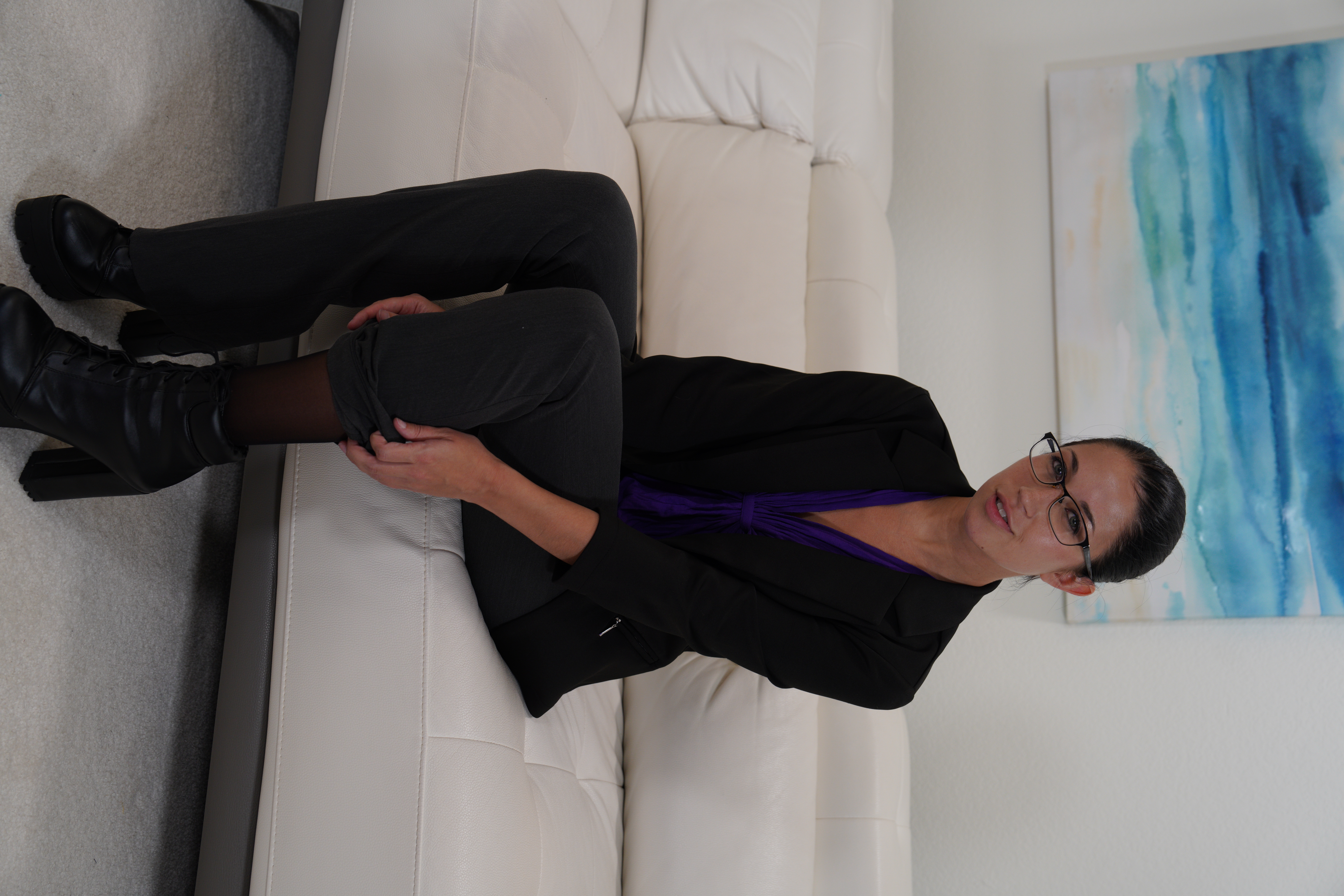 Alex Coal is your naughty co worker wearing thigh highs layered with pantyhose